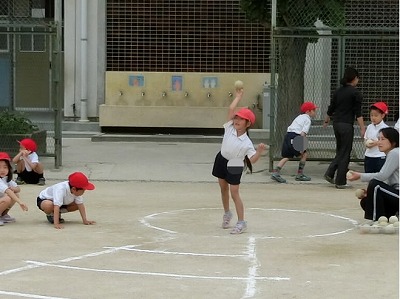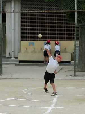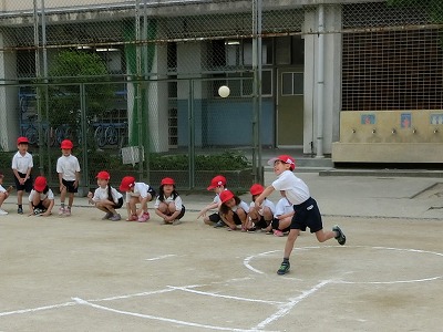 まずは、1年生のソフトボール投げの様子です。