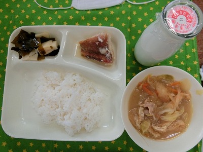 赤魚は給食にもよく登場する白身のたいへんおししいお魚ですが、今日は中骨も取ってあるタイプで、低学年さんも骨を意識せずに食べることができました。