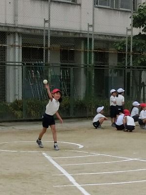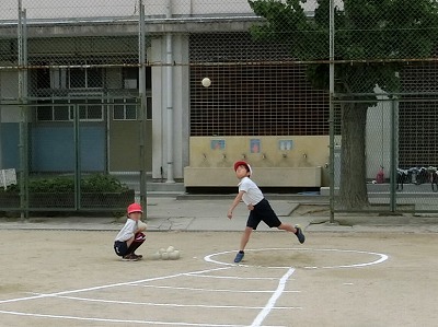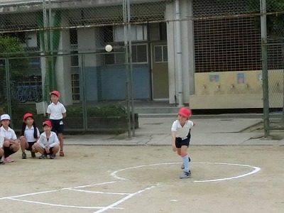 昨日の雨でグランド状態が心配されましたが、豊新小学校のグランドはとっても水はけがよく、3年生は1時間目を使って実施しました。