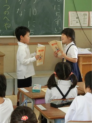 その後、ペアでの発表会です。「さとう」「さくら」「さんま」「さる」「さんすう」「さめ」「さくらんぼ」などがありました。