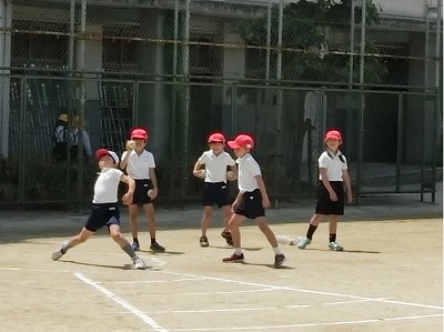 5年生は「全国体力・運動能力、運動週間等調査」のため、この3種目以外に握力、上体起こし、長座体前屈、反復横とび、20mシャトルランを、後日に講堂で実施していきます。