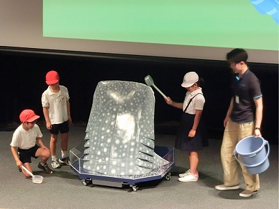なぜ「ジンベイ」ザメという名前なのか、大きさ、ひれの位置、赤ちゃんの生まれ方、えさの食べ方など、今まで知らなかったことをたくさん教わりました。
