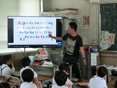 今日はA〜Zのアルファベットの発音をDVD教材で行っていました。その後、歌、単語と学習は続いていったのですが、子どもたちは大きな声で、楽しそうに取り組んでいました。