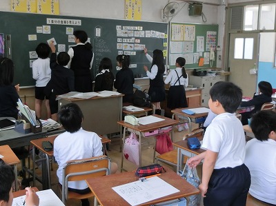 6年生が栄養士さん2名に来ていただいて栄養学習をしました。