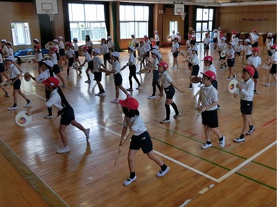 今日から本格的に運動会練習がスタートし、特別時間割で運動場・体育館が学年ごとに割り当てられ、ほぼ、毎日のように体育(運動会練習)の学習が組まれています。