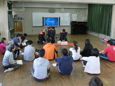 放課後に多目的室で、6月19日(月)からの「プール」を前に、消防署の方に来ていただいて、「救急救命講習会」を実施しました。