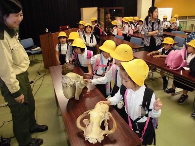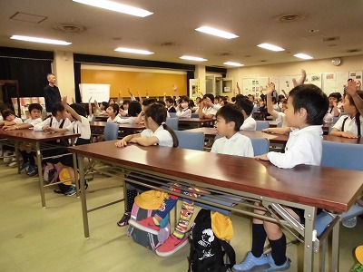 2年生は、1年生より先に10時20分から「動物のエサとウンチ」をテーマに約1時間のお話をしていただきました。