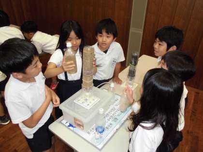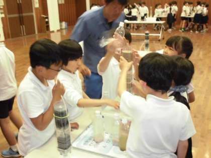 汚れている水がろ過を繰り返すことで、きれいでにおいのない美しい水になっていく様子を目の前で見ることができました。