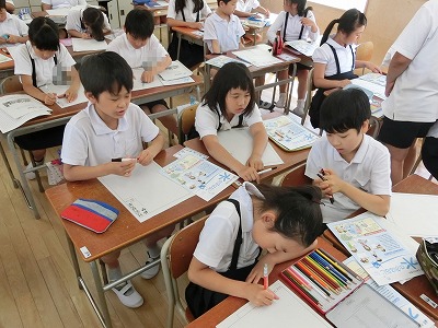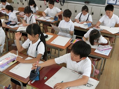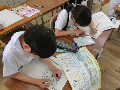 4年生が先週の金曜日に行った柴島浄水場への社会見学のまとめとして「新聞」を作っていました。