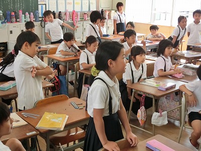 先生がフラッシュカードめくり、子どもたちは大きな声で言っていきます。3回ほどみんなで言った後、自身のある子が立ち上がり、暗記テストです。かなり多くの子が立ち上がり挑戦していました。覚えること・できることがうれしいようで、みんな真剣に取り組んでいました。