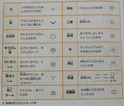 町の地図について学習するところに「地図記号」が登場します。