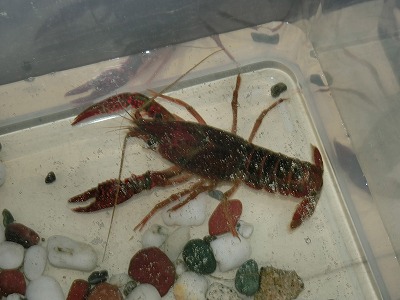 アメリカザリガニが2年生の教室前廊下に出現しました。