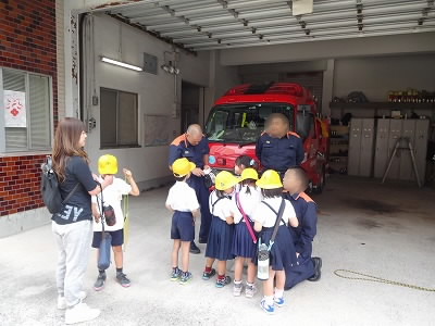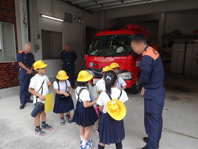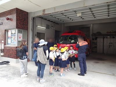 消防署では、「1日に何回出動しますか?」「1日に火事はどれぐらい起きますか」など質問して消防署の方がていねいに答えてくださいました。