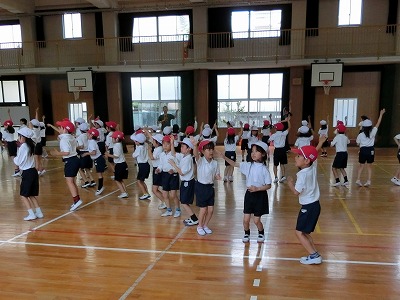 2年生も講堂で、団体演技(ダンス)の練習をしていました。