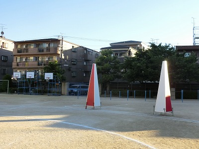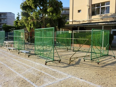 明日からの運動会全体練習を控え、放課後に先生方や管理作業員さんで、入退場門の設置、本部や用具・器具用のテントの足の組み立てを行いました。さらに、児童席の赤・白組別の場所割りもしました。
