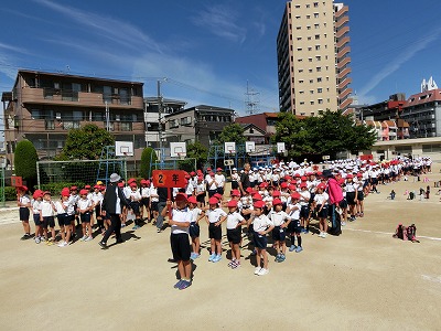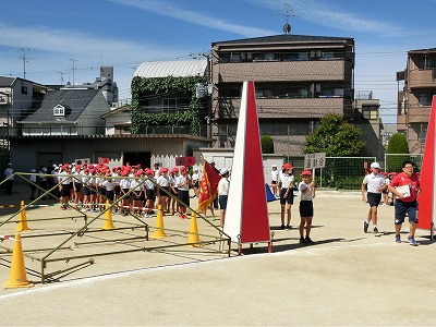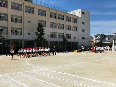 入場隊形の確認、入場行進、開会式の流れ、運動会の歌や校歌の練習、合同体操の動きなどを練習しました。