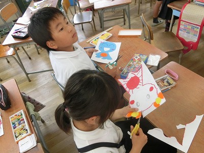 日曜日のお天気予報にはくもりマーク・雨マークがついています。お天気を心配した子どもたちが「てるてるぼうず」を作っていました。とってもかわいいお顔をしていました。
