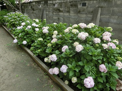 本校のあじさい(職員室から理科室付近の校舎裏)も、一部が見ごろとなっています。