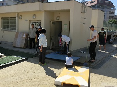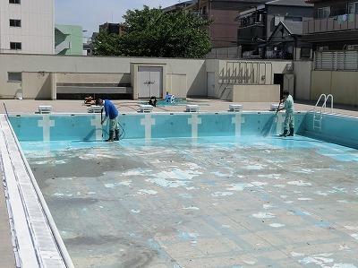 今日の放課後、来週の月曜日からのプール学習に向けて、先生方と管理作業員さんとでプールの清掃をしました。