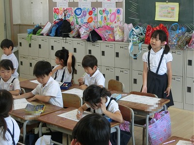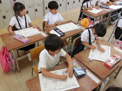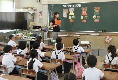 栄養士さんに来ていただいて、今日は1年生が栄養学習を行いました。