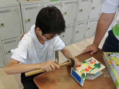 くぎはとても細いので、曲がらないように慎重に打っていきます。