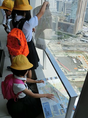 大阪市の地図を広げ、地図にマークした建物を確認していました。