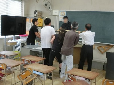 今日は放課後に教職員の「防犯研修会」を実施しました。東淀川警察署の刑事さんと管内の警察官の方にご協力いただきました。