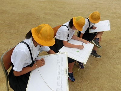 今日は、1組と2組が合同でスケッチです。2組さんは2回目、1組さんは初めてです。1組さんは2組さんにアドバイスをもらいながら作業していました。