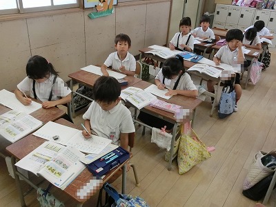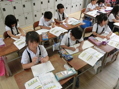 授業の後半では、文章や絵で示された問題から、式を立て、計算し、答えを求める学習を行っていました。