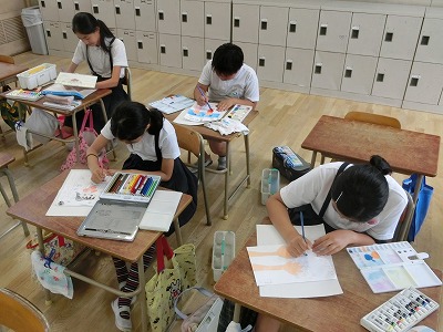 手洗い啓発用のポスターを1人1枚、描いていました。