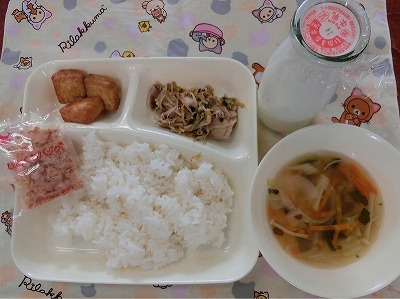 厚揚げのしょうがじょうゆ油かけは、「しょうが」がどうかな?、苦手かな?、と思ったいましたが、しっかりした味付けで、ごはんの進むおかずで、子どもたちもお替りをしてたくさん食べていました。