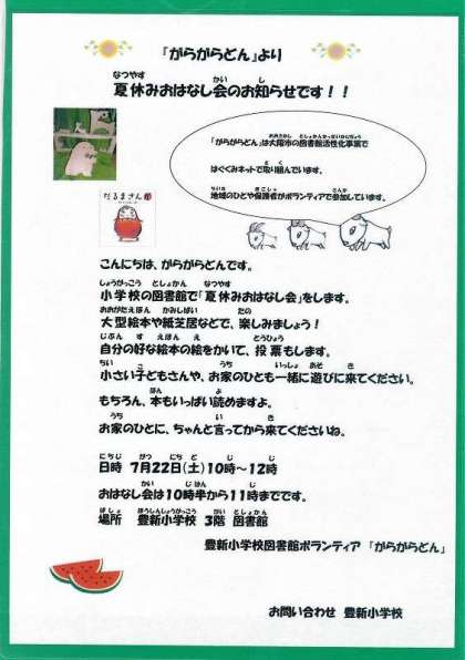 がらがらどん 夏休みおはなし会のご案内(再) (7月21日)