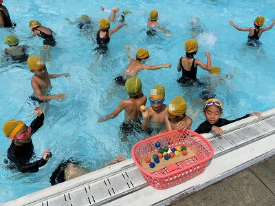 1組…93個、2組…78個で、1組の勝利で、今日のプール水泳学習は終わりました。