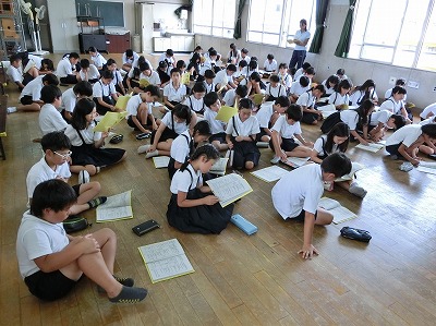 先生から、日課表、持ち物、注意事項などについてのお話がありました。
