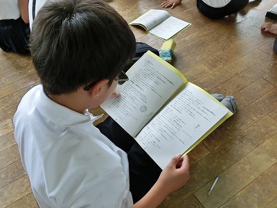 以前に「しおり係り」さんが作成していた「しおり」がみんなに手渡させ、期待、喜びも倍増です。