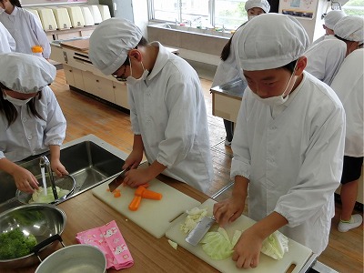 5年生の家庭科調理実習の様子です。