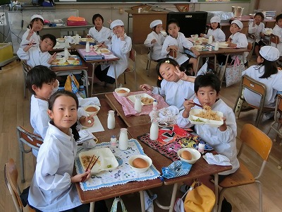 もちろん、パンに切れ目を入れスパゲッティをはさんで食べている子もたくさんいました。