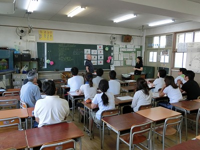 今日は、5・6年生の外国語活動で教えていただいているローズ先生に、C-NET(ネイティブの先生)と担任の先生との効果的なT.T.(Team-Teaching)についての研修を行いました。