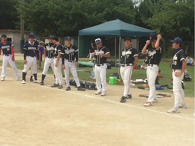 一試合目、対井高野中との試合では、打線が爆発し15対4と快勝しました。