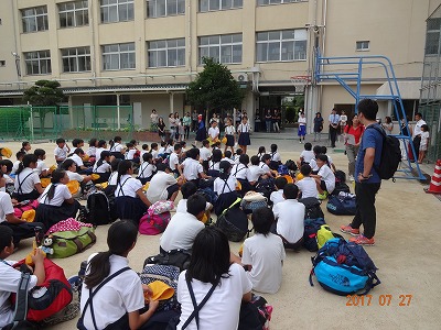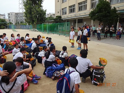 見送りの保護者のみなさんや先生方に挨拶をして、学校を出ます。