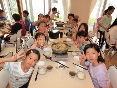 女の子チーム。仲良く、おしゃべりをしながら、おいしそうに食べていました。
