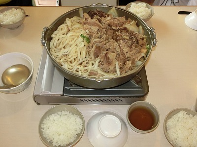 今晩のメニューは「すき焼き」です。たっぷりのお肉に、おうどんも入っています。