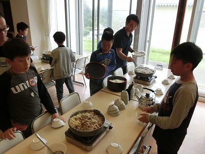 食堂には、10分前に食事係さんが来て、夕食の準備をしてくれています。