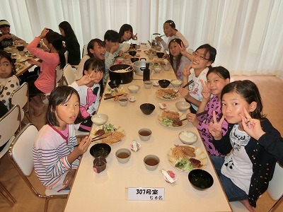 女の子のテーブルでも、2回ほどおひつのお替りをしていました。