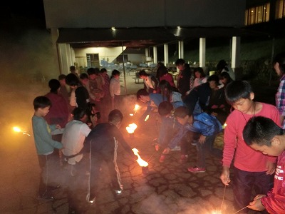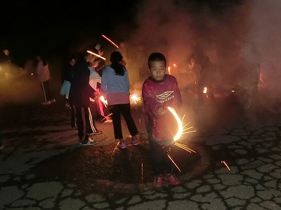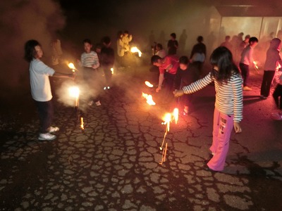 担任の先生から、2本ずつの手持ち花火をいただきました。