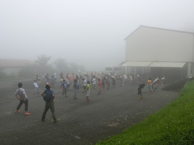 今朝もすごい霧の中です。体操を始めると同時に、どんどんと白くなっていきました。