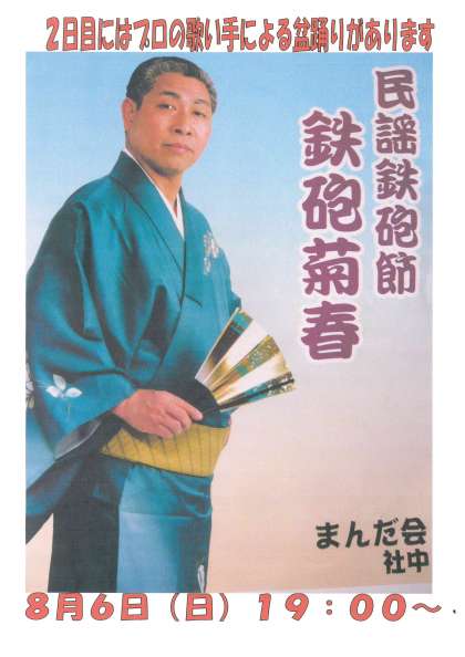 さらに、校庭のやぐらの上では、日曜日にはプロの歌手が盆踊りの曲を歌ってくれ、盛り上げてくれます。
