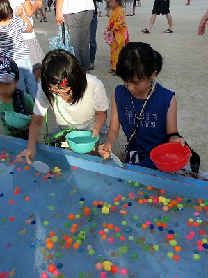 子どもたちは、お目当ての賞品をめがけ、くじ引きやコイン落とし、ボール投げなどのコーナーへ…。
