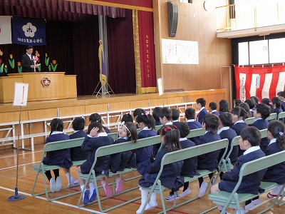 入学式では、校長先生や来賓の方のお話も行儀よくしっかりと聞くことができていました。