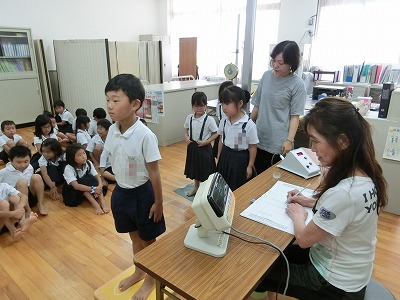 また、測定の前には、保健室のK先生から、正しい手洗いの方法についての説明がありました。11日〜15日は「手洗い強調週間」です。しっかりと手を洗い、チェック表にたくさんの○を付けましょうね。